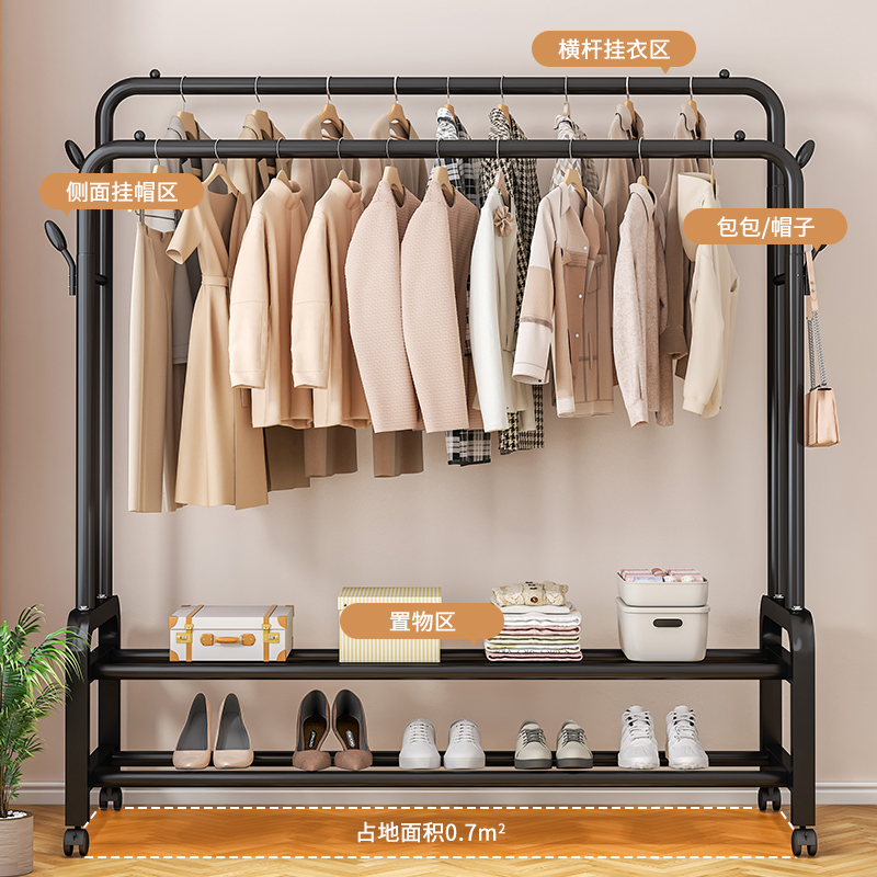 懒角落衣架落地卧室不占空间家用多功能可移动收纳置物架衣服帽架