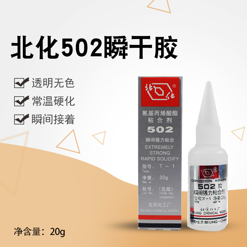 原装北京化工厂502 T-1瞬间胶水瞬干胶北化透明强力粘接金属木材橡胶塑料陶瓷耐热耐水20g专业解胶剂常温固化