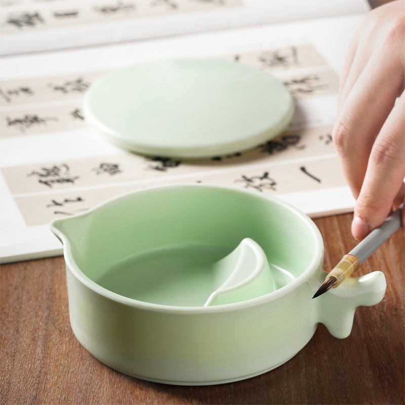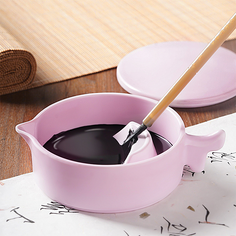 墨池多功能仿瓷防摔带盖墨盒国画书法练字专用学生初学者笔架笔山墨碟墨盘文房四宝带盖小砚台盛墨