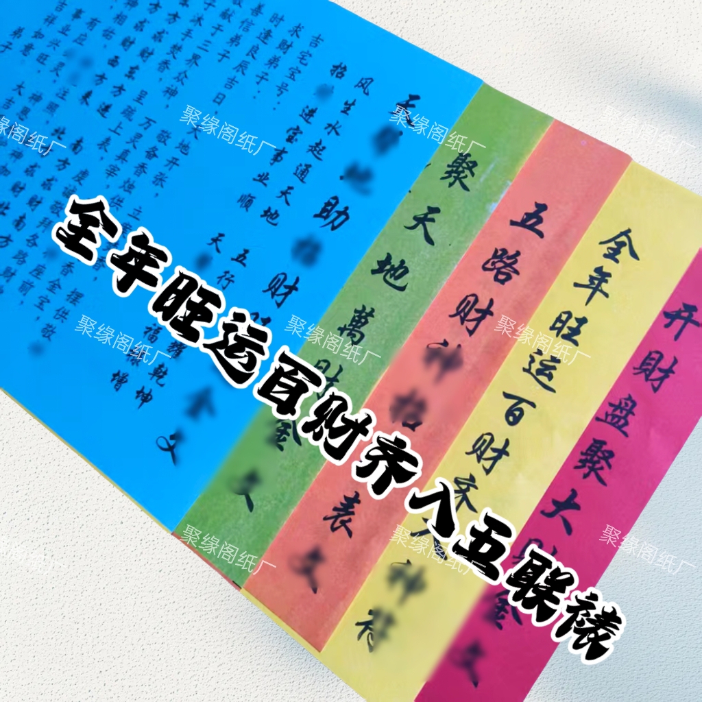 五连旺运补库百财齐入彩裱 套装五色五张一套