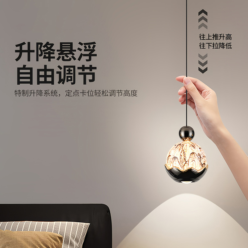 床头升降吊灯现代简约主卧室轻奢餐厅餐桌吧台创意艺术单头吊线灯