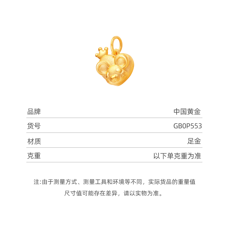 【中国黄金官方店】乐福北鼻系列宠爱吊坠时尚气质单品不含配链