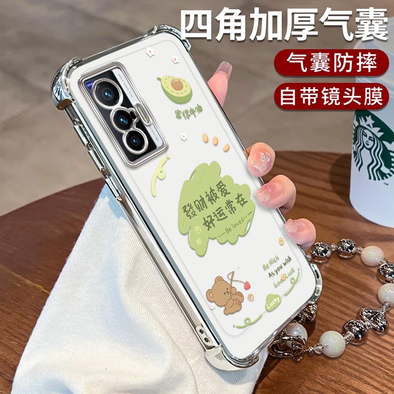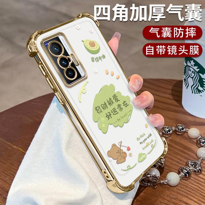 适用VIVOX70手机壳发财被爱电镀四角防摔X70T简约硅胶气囊全包vivoX70Pro高颜值手链女款保护套