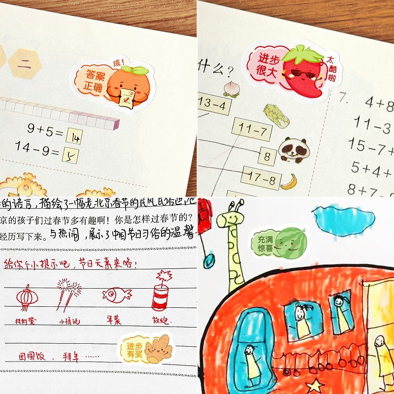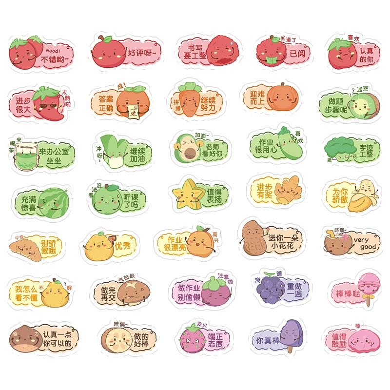 2025新款可爱教师批语贴纸水果食物卡通表情包贴画趣味作业标签贴