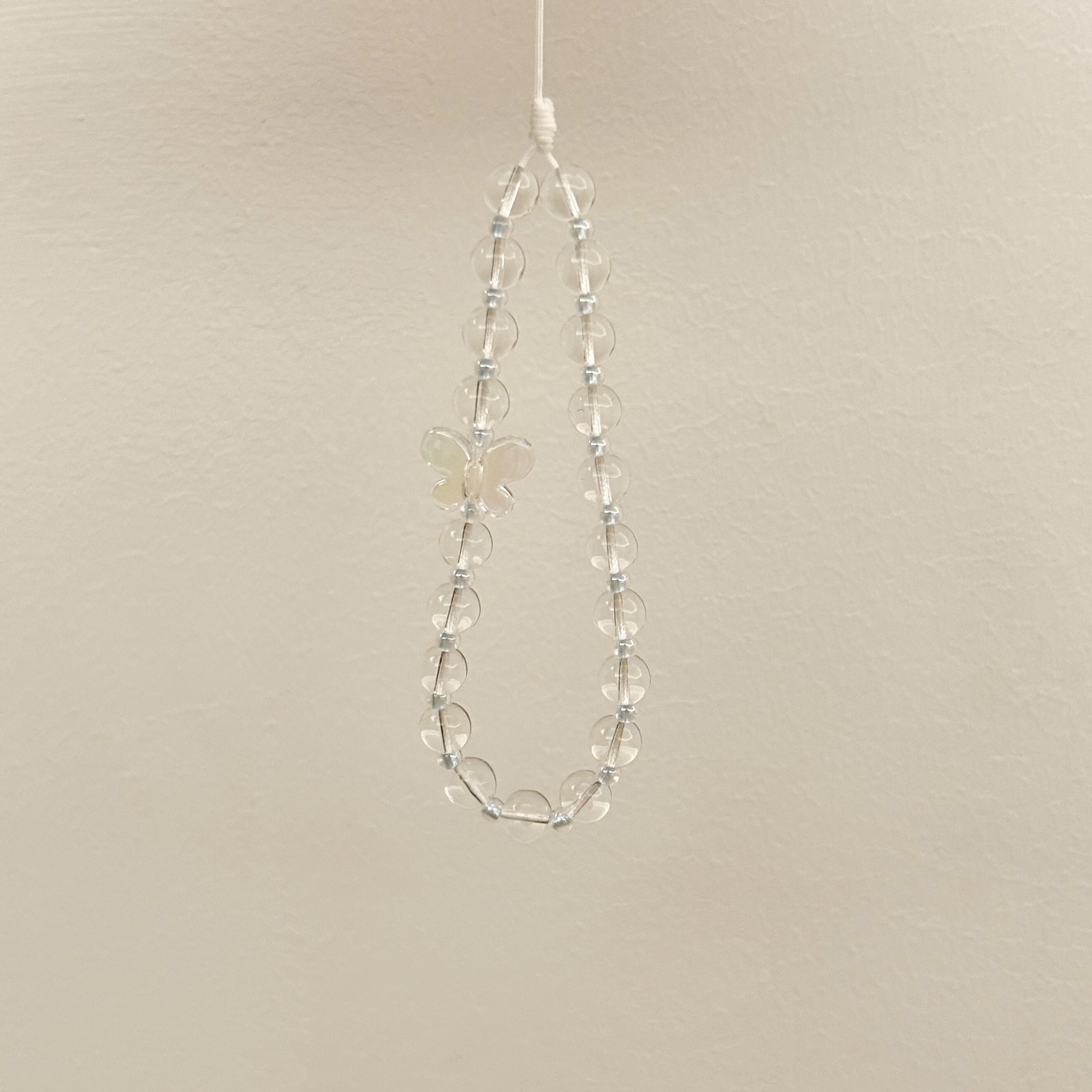 Purple forest原创*夏日冰蓝蝴蝶。留白琉璃手机链ccd拍立得挂链