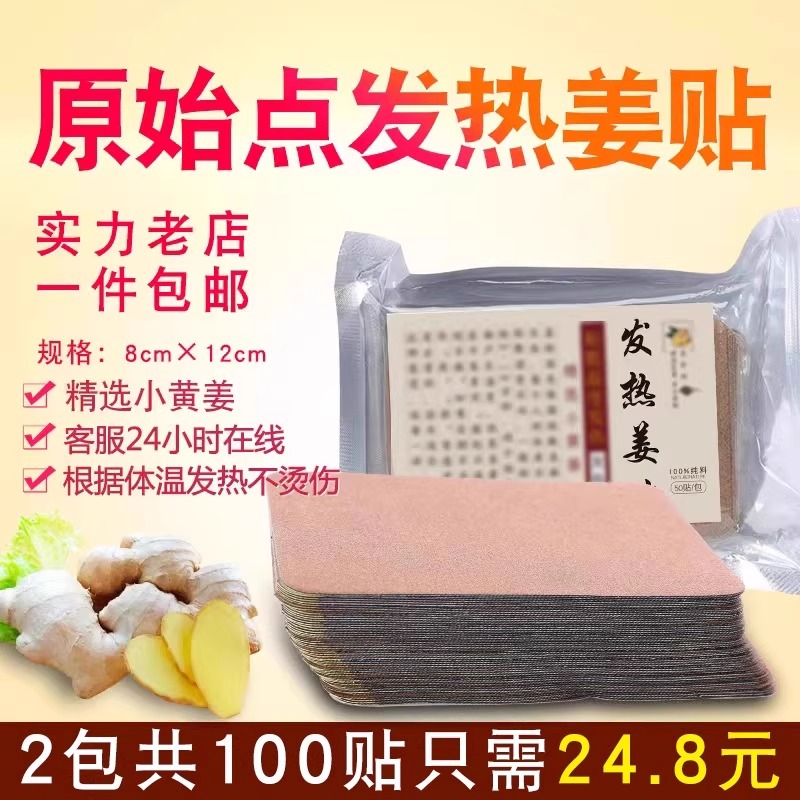 姜贴颈椎发热生姜贴官方正品100片原始点膝盖关节艾灸足贴暖宝宝