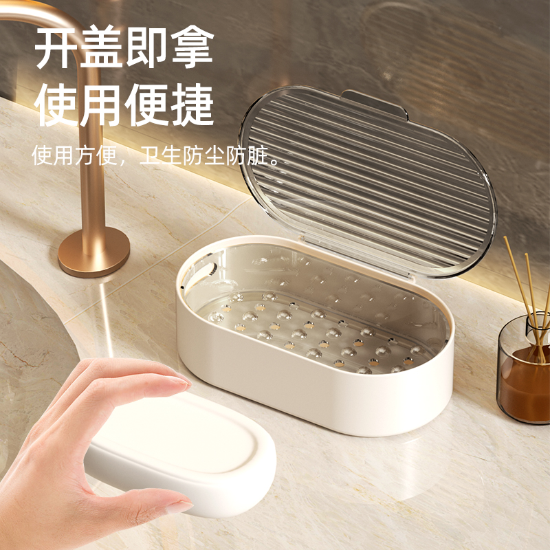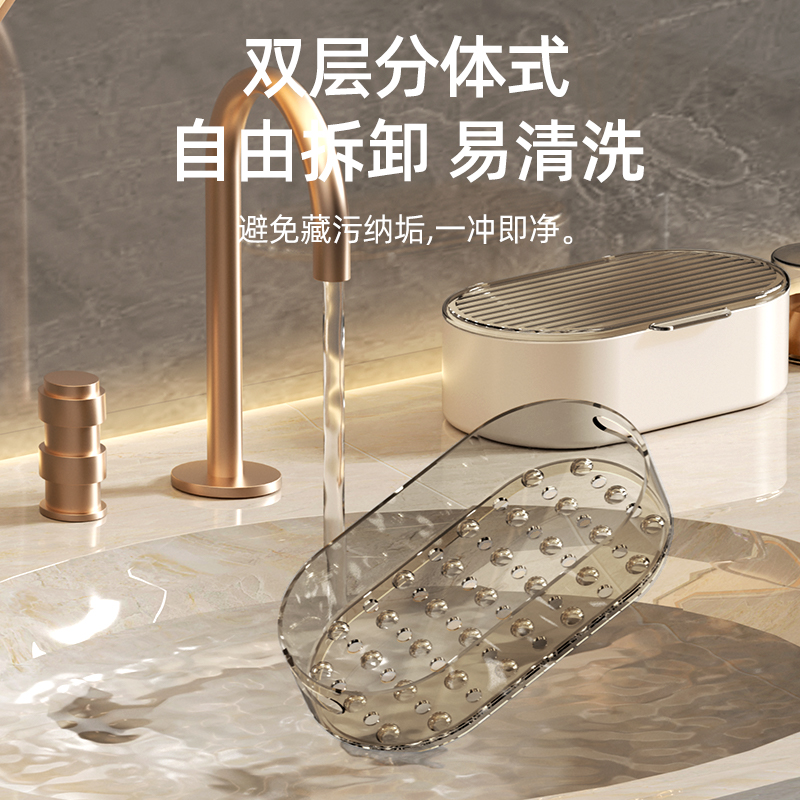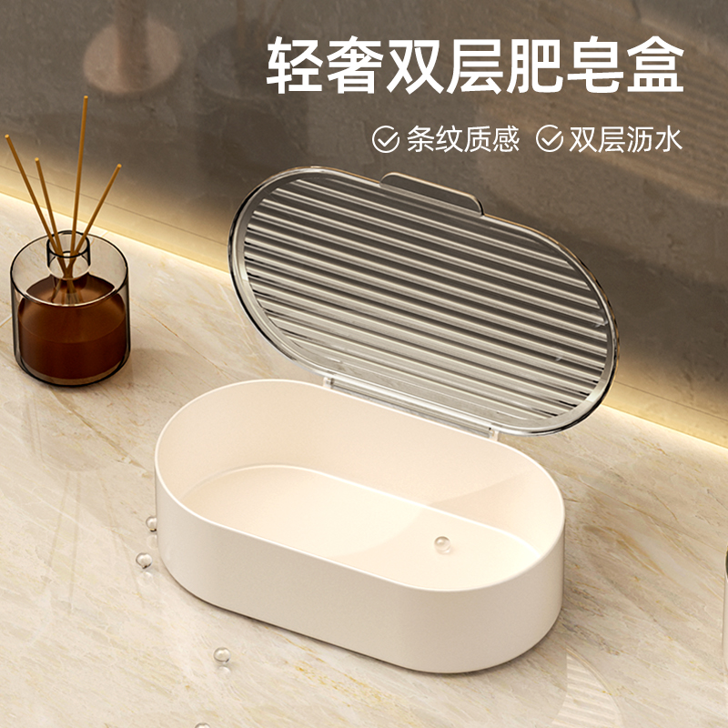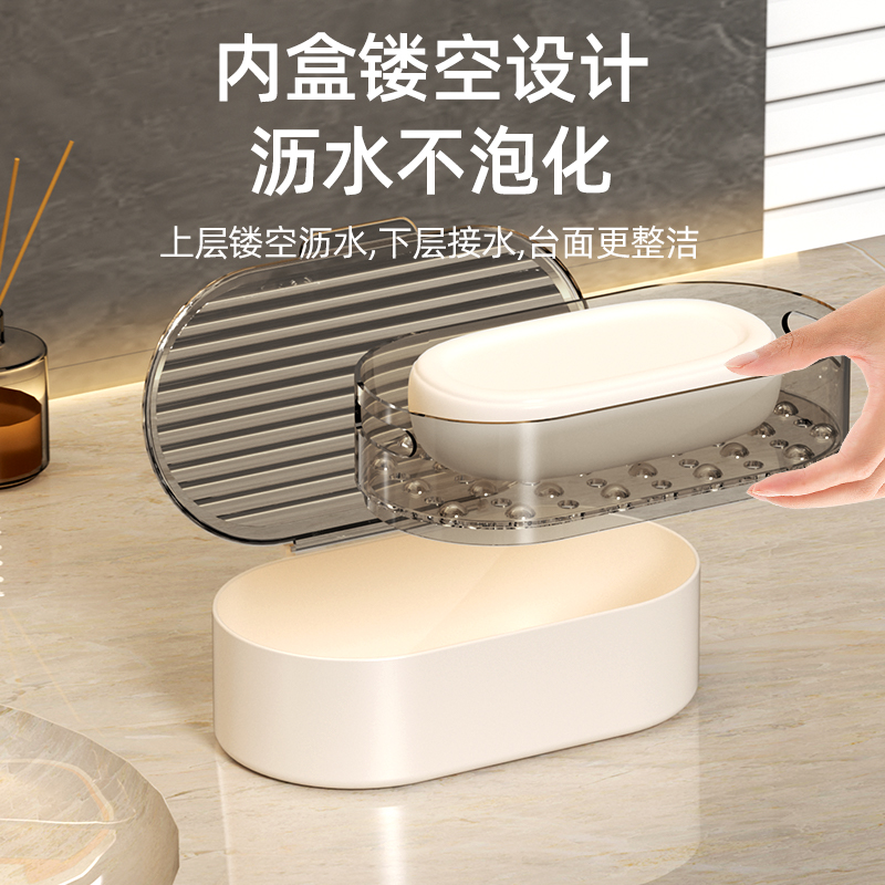 轻奢台面肥皂盒便携式家用创意带盖沥水盒卫生间收纳香皂盒子双层