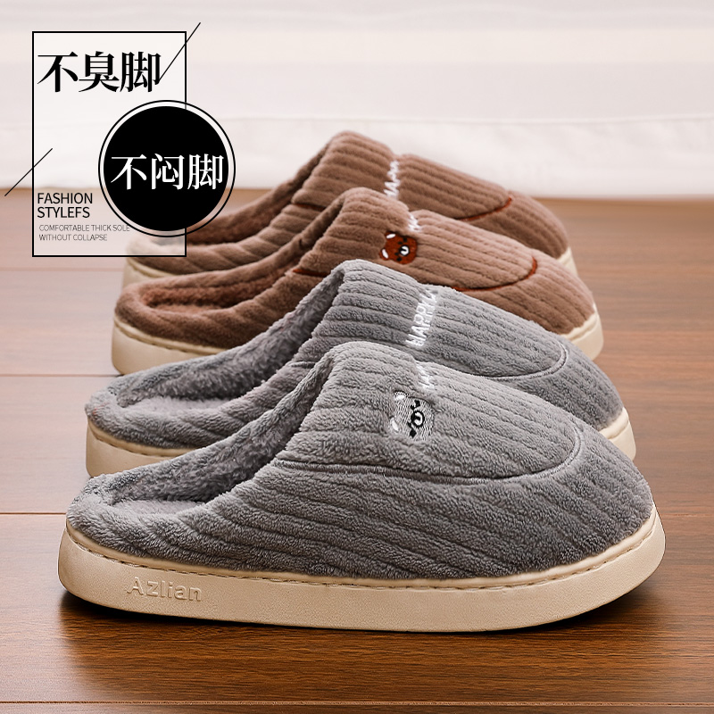居家男士棉拖鞋男款2025新款秋冬季室内家居毛拖鞋女冬天厚底毛绒