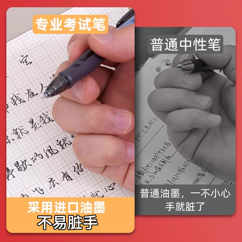 ST刷题笔高颜值按动中性笔圆珠笔黑色水笔小学生专用考试0.5速干碳素笔水性黑笔按压式做笔记签字笔非按斤卖