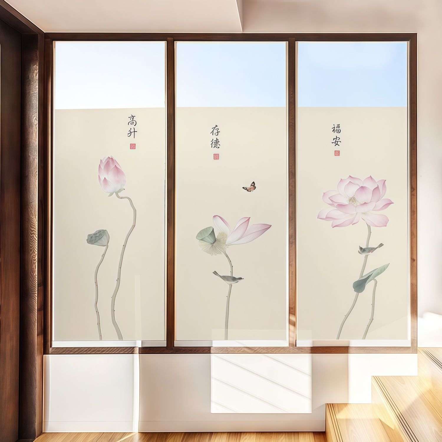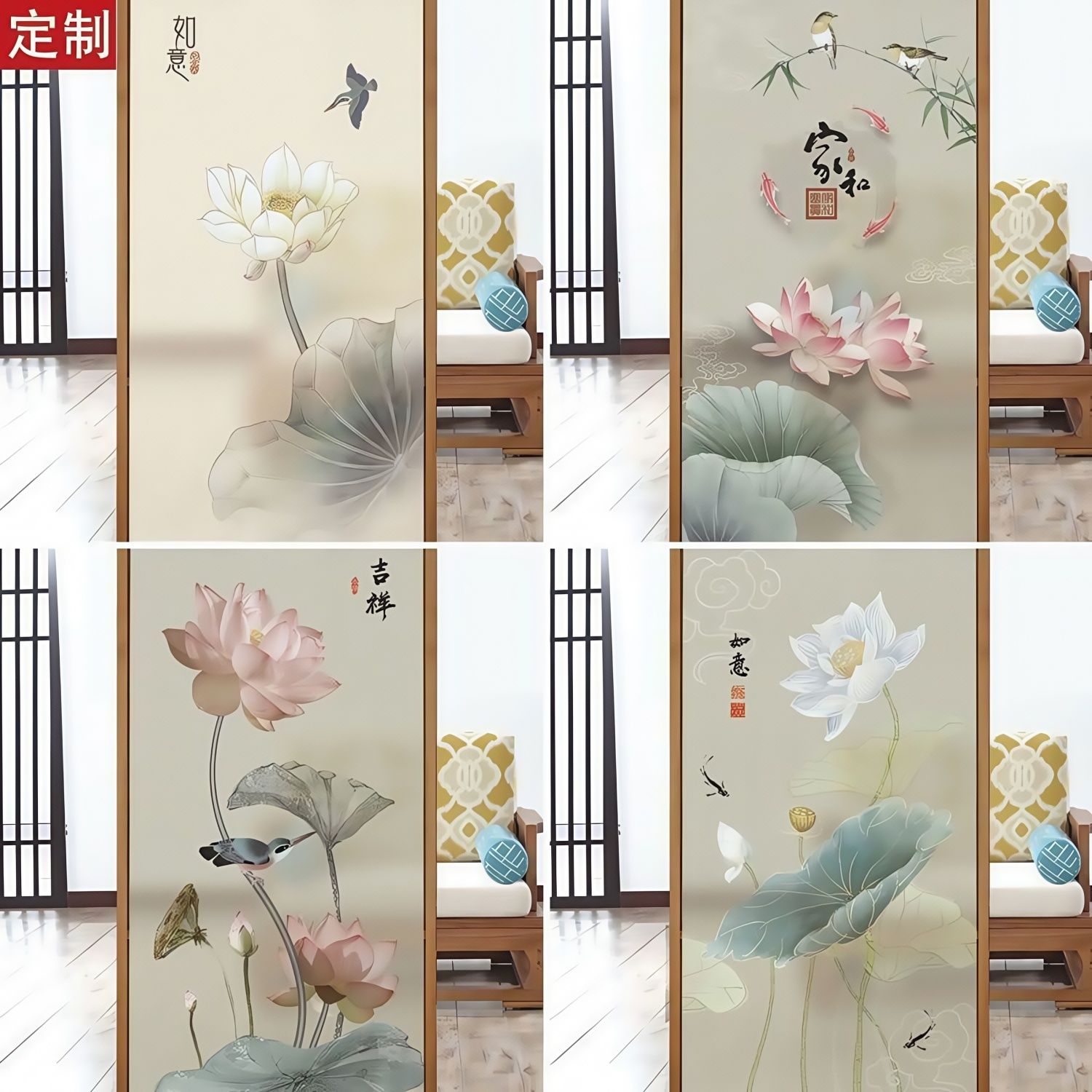 中式静电玻璃贴隔热透光不透明防窥防晒贴纸卧室洗手间玻璃窗贴纸