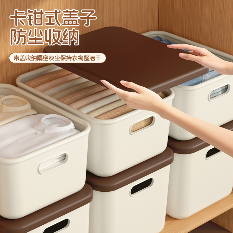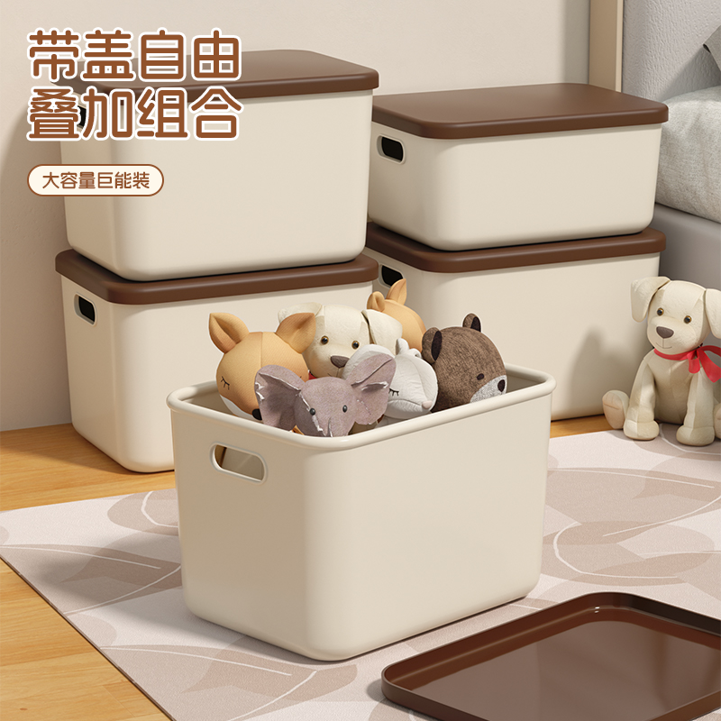 桌面收纳盒高级感零食化妆品整理杂物塑料储物筐厨房置物带盖盒子