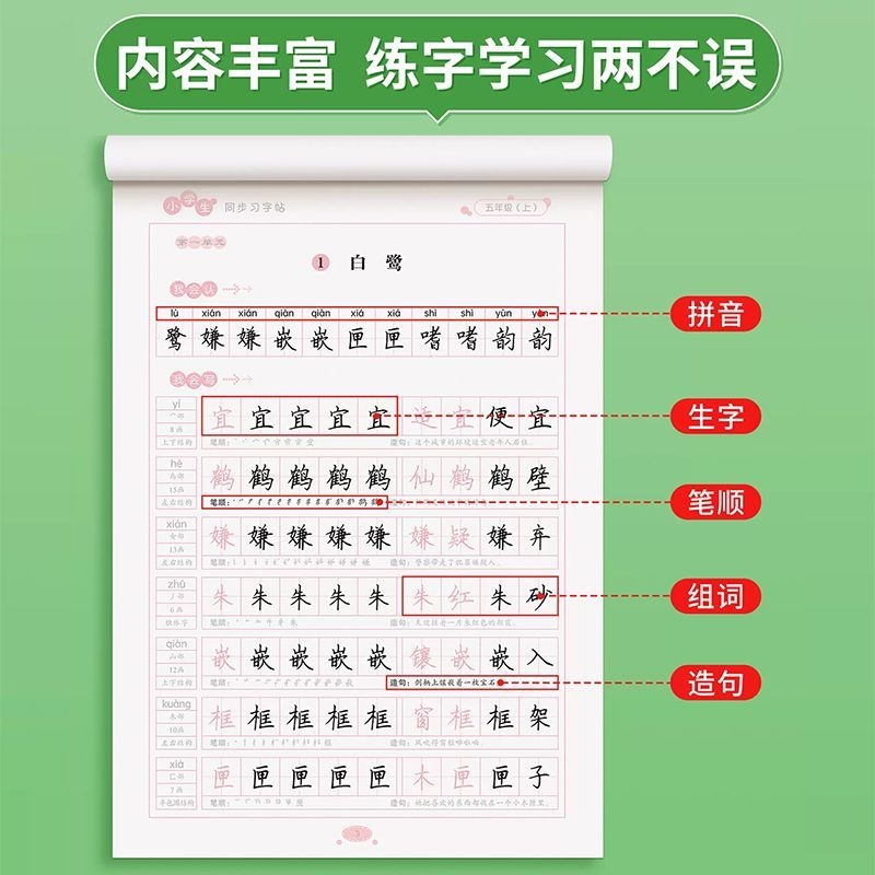 课前预习练字帖二年级三四年级上册下册语文同步字帖小学生专用每日一练人教版课本生字组词段落描红钢笔书写练字硬笔书法练字本