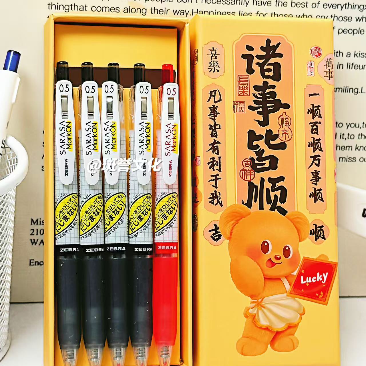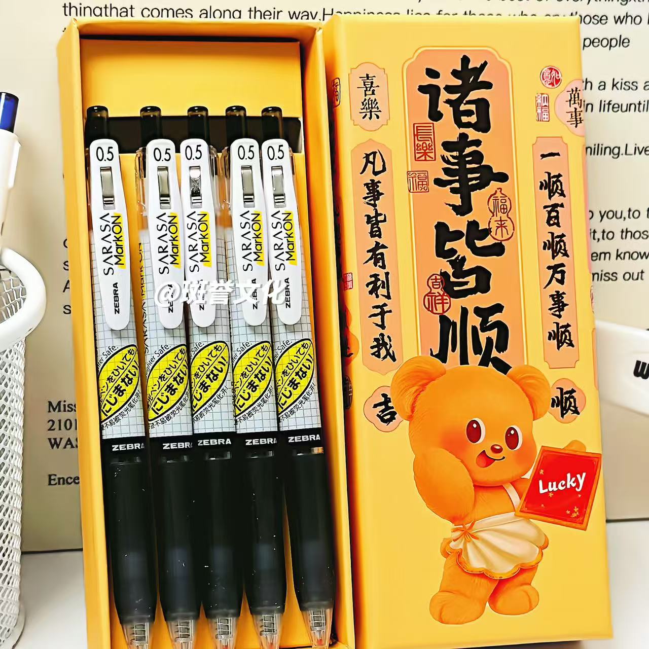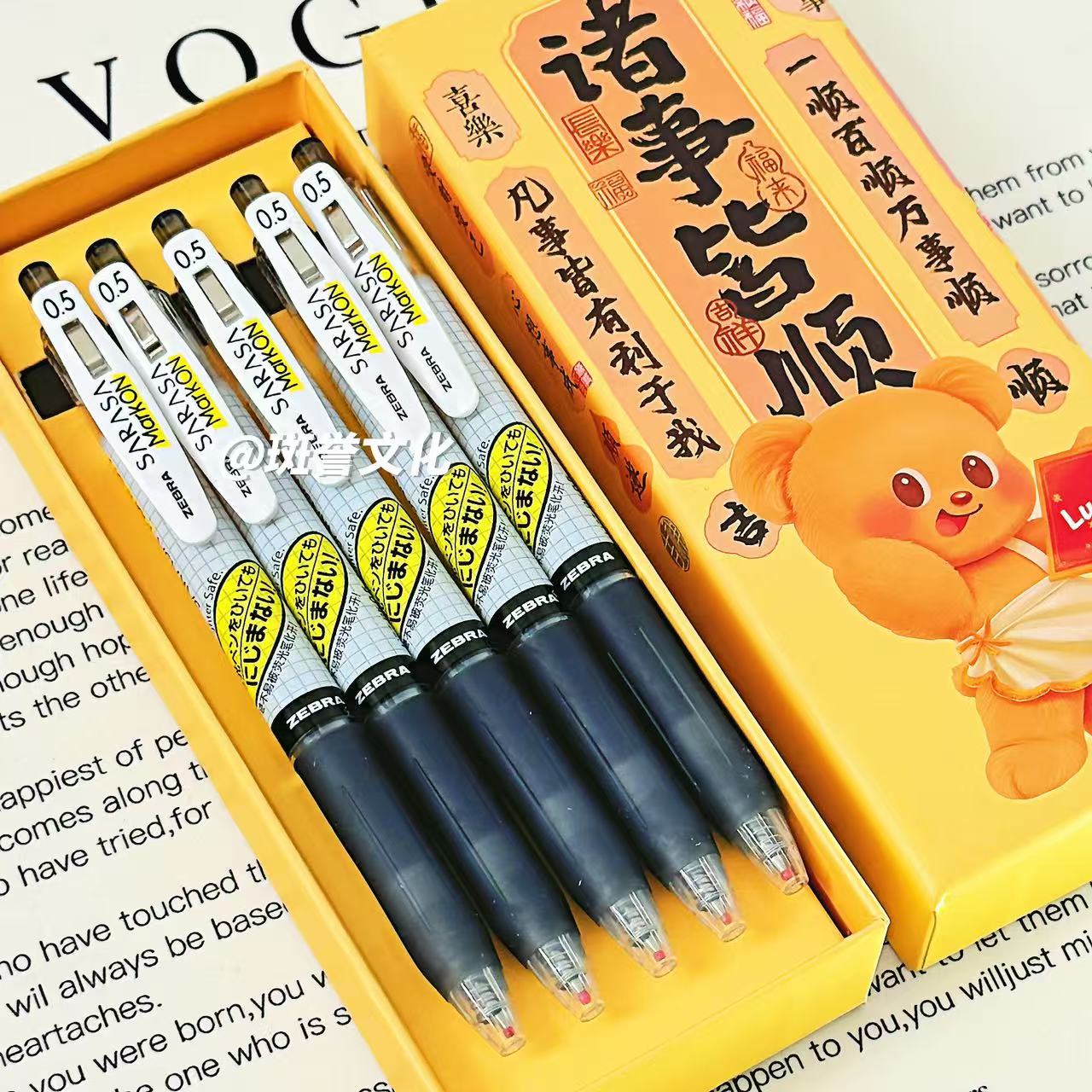 日本ZEBRA斑马JJ77不晕染速干中性笔不墨迹格子柄礼盒装幸运熊lucky高颜值ins风礼品进口文具儿童节送小学生