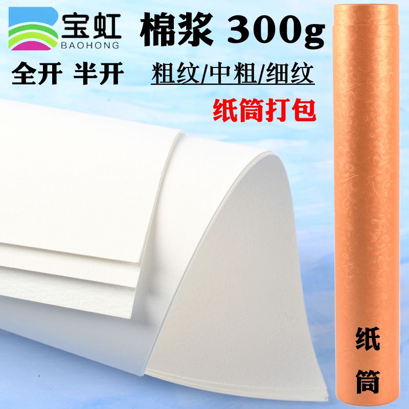 宝虹学院级全棉水彩纸 棉浆水彩本300g全开对开半开2开细纹中粗纹