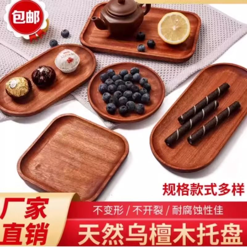 日式乌檀木托盘实木长方形家用餐具茶水杯盘椭圆形碟西餐圆形盘子