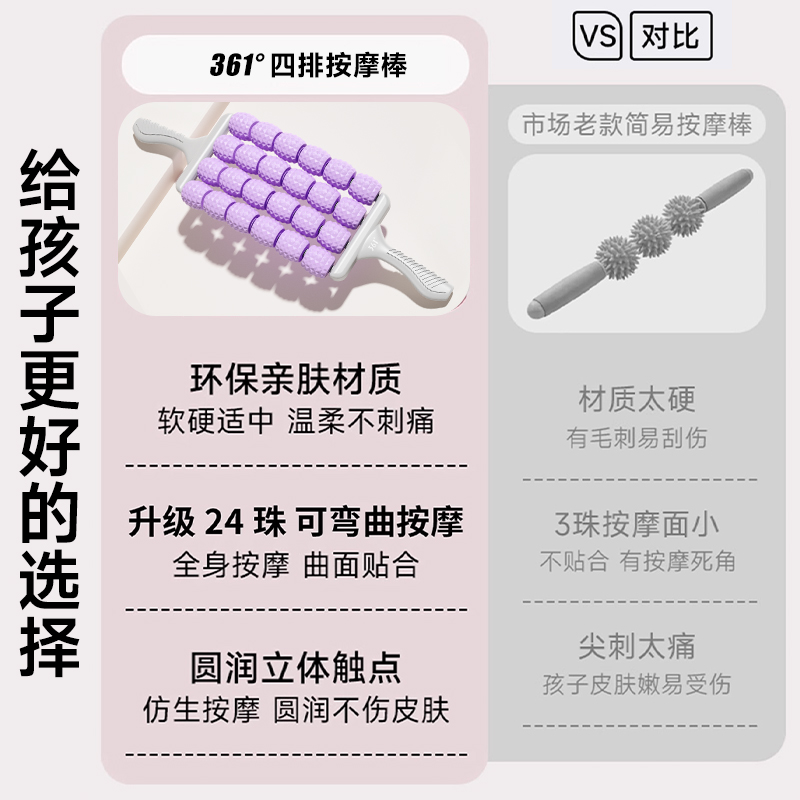 三排可弯曲按摩棒瑜伽腿部狼牙棒长感统高训练儿童肌肉放松滚轮轴