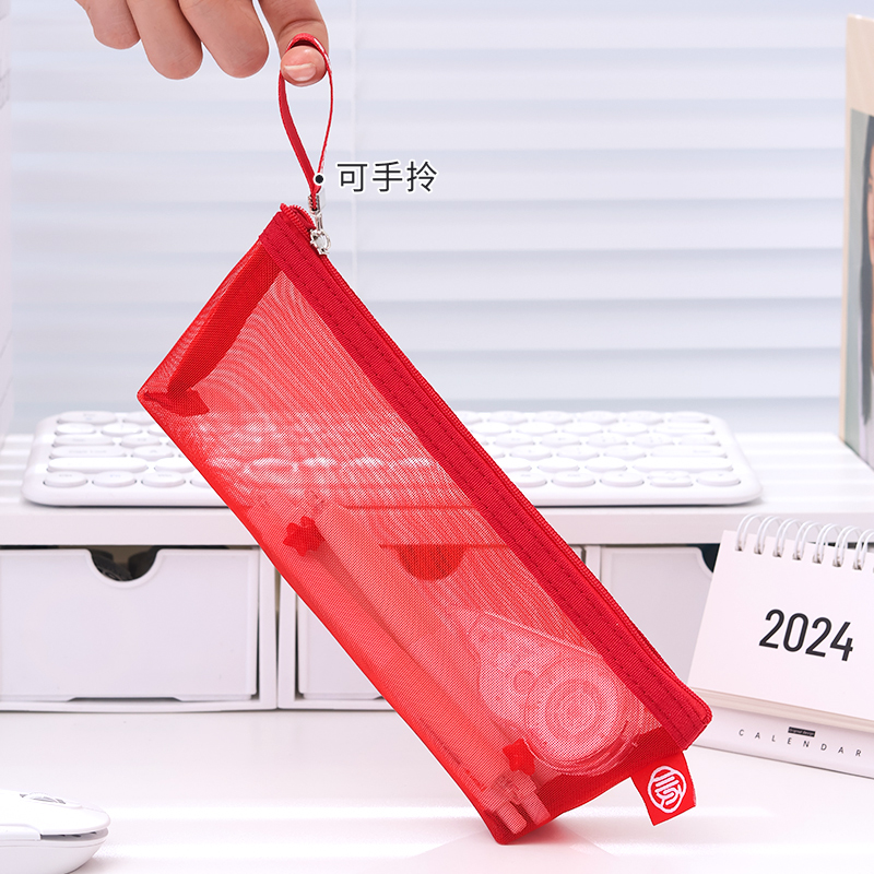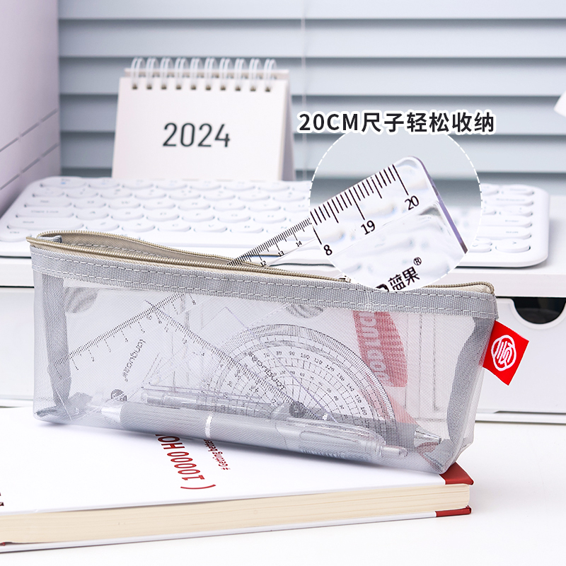 蓝果透明网纱笔袋大容量简约透明ins文具盒小学生网格袋简约双层分隔笔盒可入考场收纳袋铅笔袋男孩女孩款