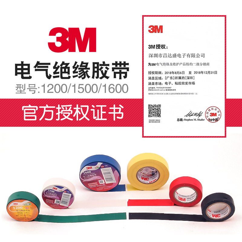 3M1500电气绝缘胶带3M电胶布3M1600型电工胶带PVC电工胶电线胶带3M电工胶电器绝缘胶带600V电压18MM*10M*0.13