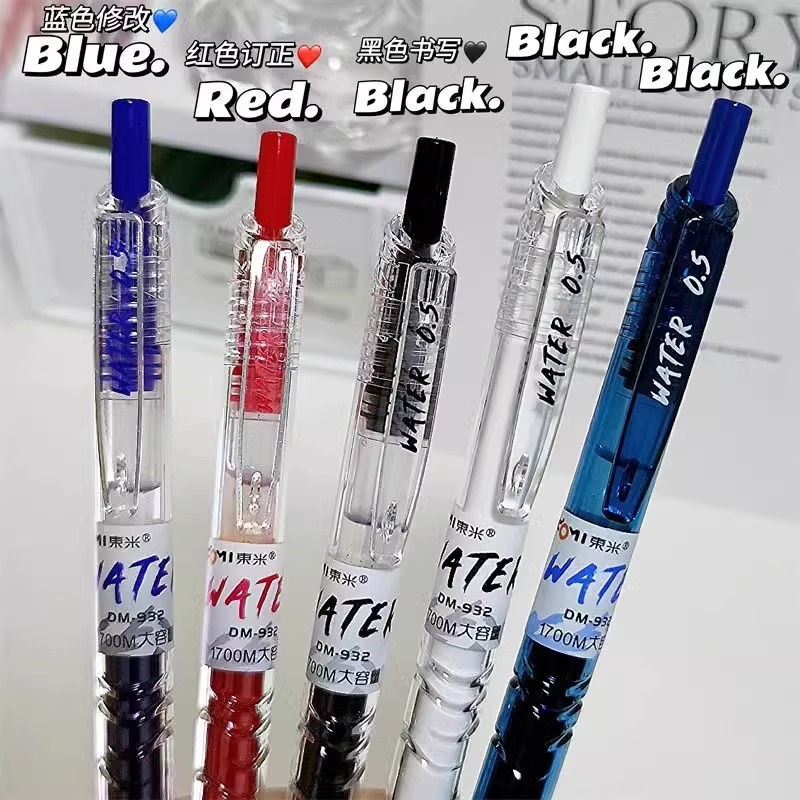 东米中性笔932刷题笔速干CS头按动笔考研宝特瓶0.5mm黑色透明日系ins高颜值大容量顺滑按动式三色神器新款