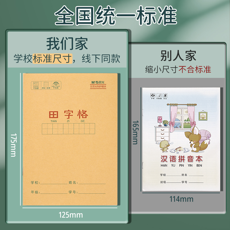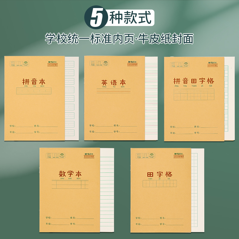 晨光拼音田字格本英语薄数学语文本36k米黄内页牛皮纸加厚练习本一年级小学生作业本用练字笔记作业本子