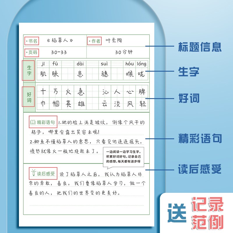 a5读书b笔记本摘抄本好词好句好段阅读记录卡小学生摘抄本日积月
