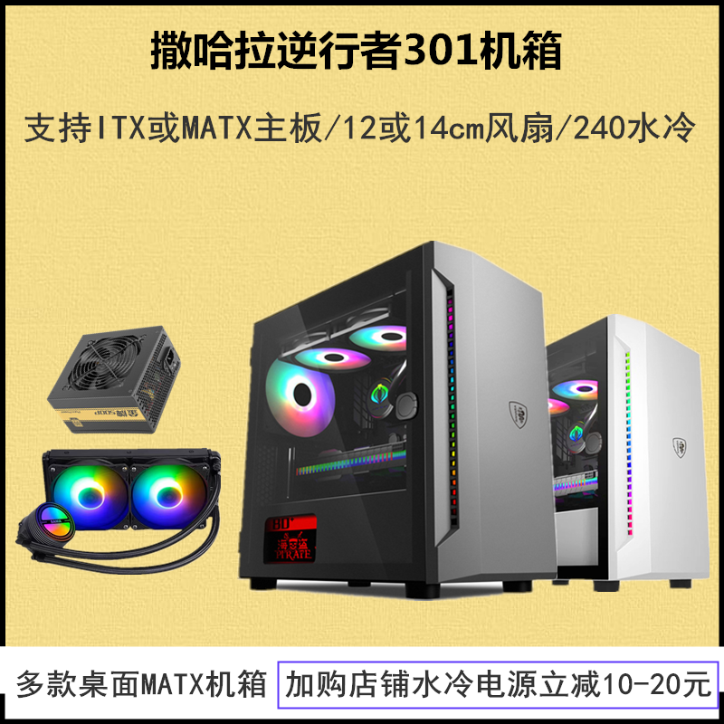 撒哈拉逆行者301台式机电脑小机箱侧透游戏240水冷MATX白色小机箱