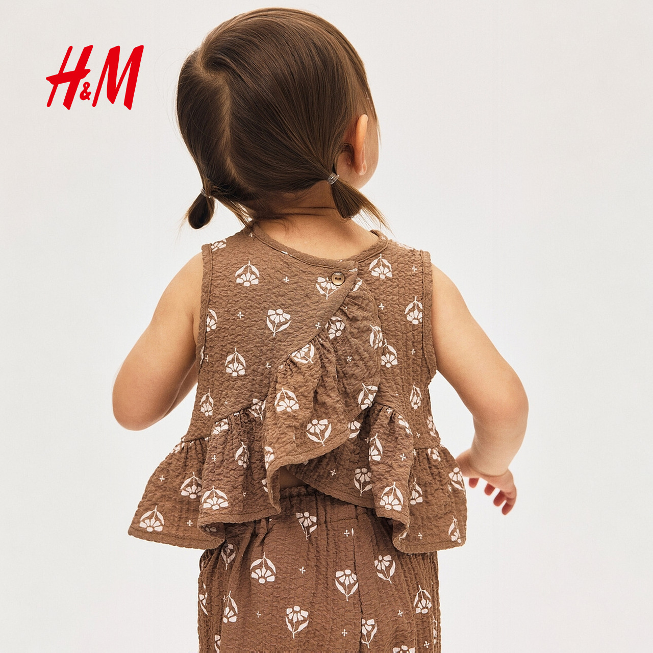 HM套装2025年秋季新款时尚童装女婴上衣和长裤2件式套装1292837