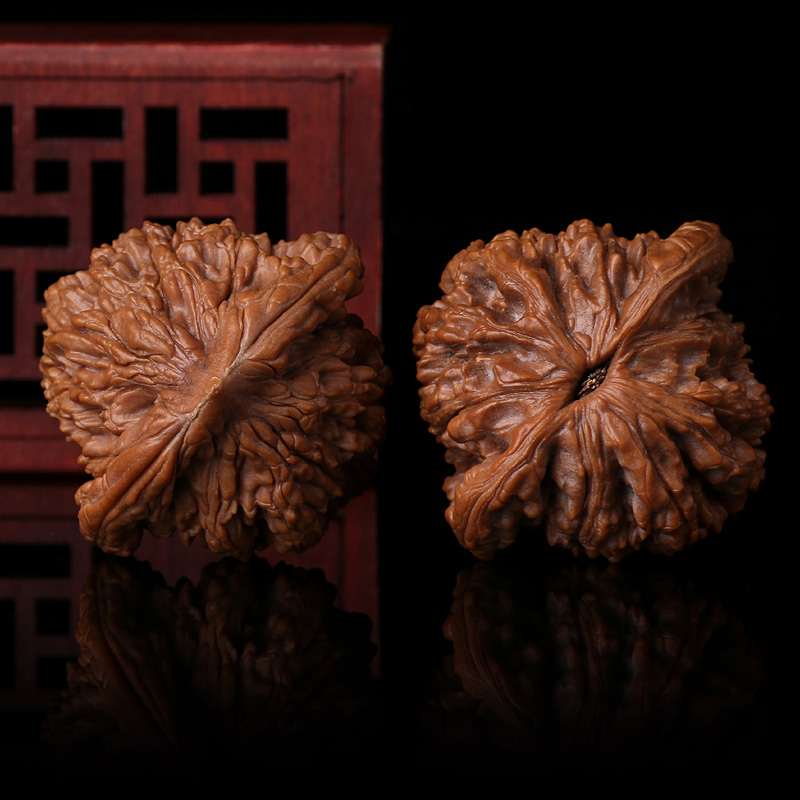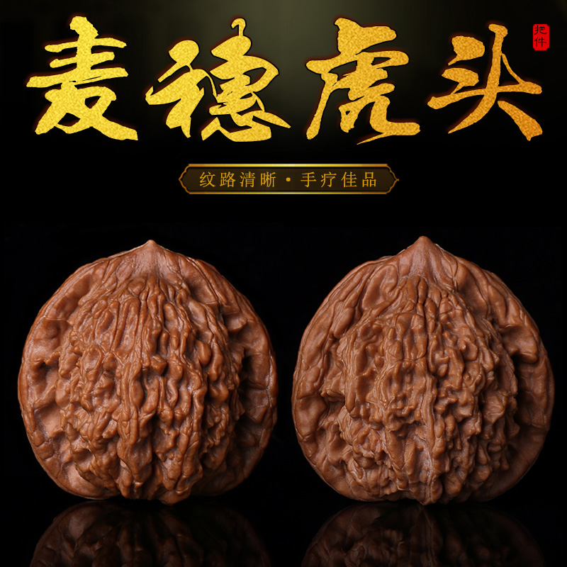 文玩麻核桃至尊麦穗虎头狮子头手盘把件原色老树骨质好高山流水纹