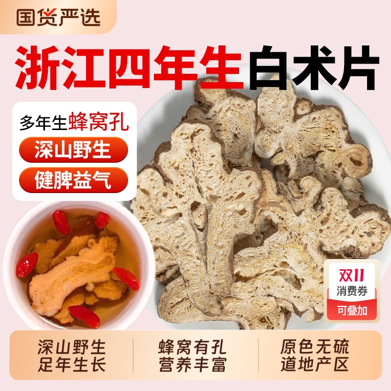 正宗白术中药材正品官方旗舰店浙江四年生晒白术片白芍茯苓泡水喝