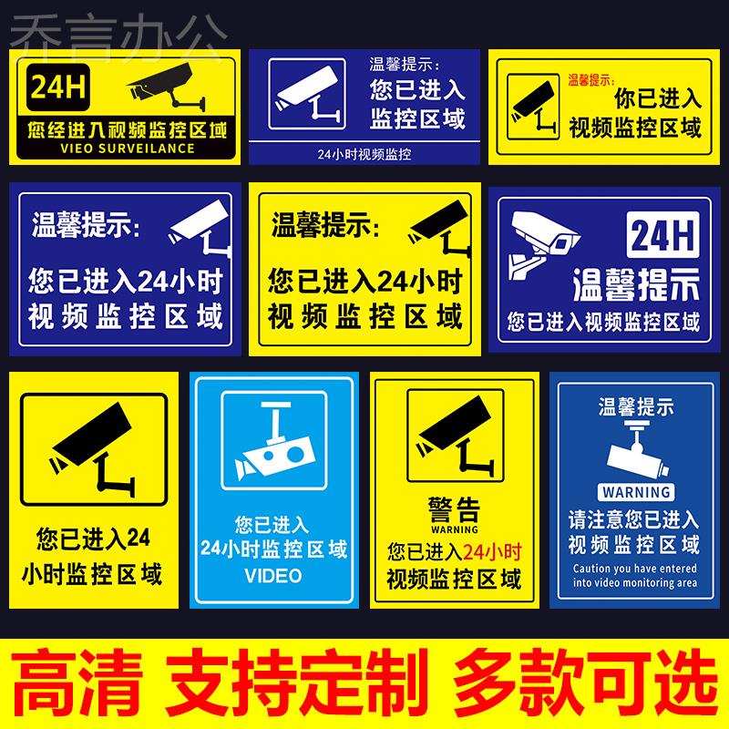 监控提示贴纸您已进入24小时监控区域标识贴纸你已进入监控区域提示牌内有监控墙贴覆盖警示警告标语贴纸定制