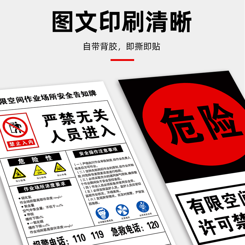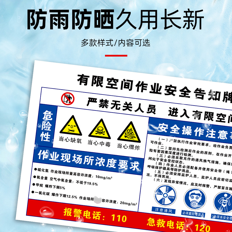 有限空间警示标识牌安全风险点告知牌受限空间作业警示牌贴纸标操作规程告知卡消防人员进入现场提示标志保持