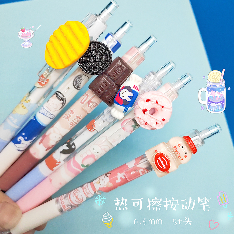 创意卡通可擦蓝色中性笔小学生三年级小零食可爱热敏摩擦按动水笔