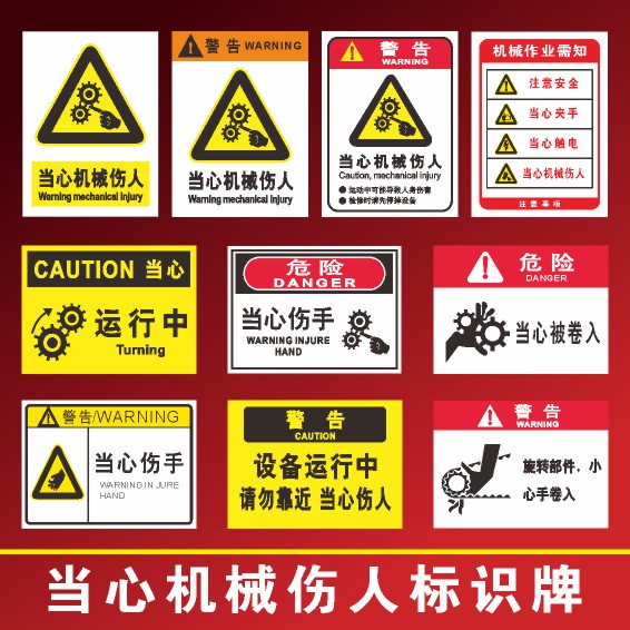 当心机械伤人标识牌运转中当心被卷入导致人身伤害撞击危险活动区域内禁止进入作业注意安全机器设备工厂定制