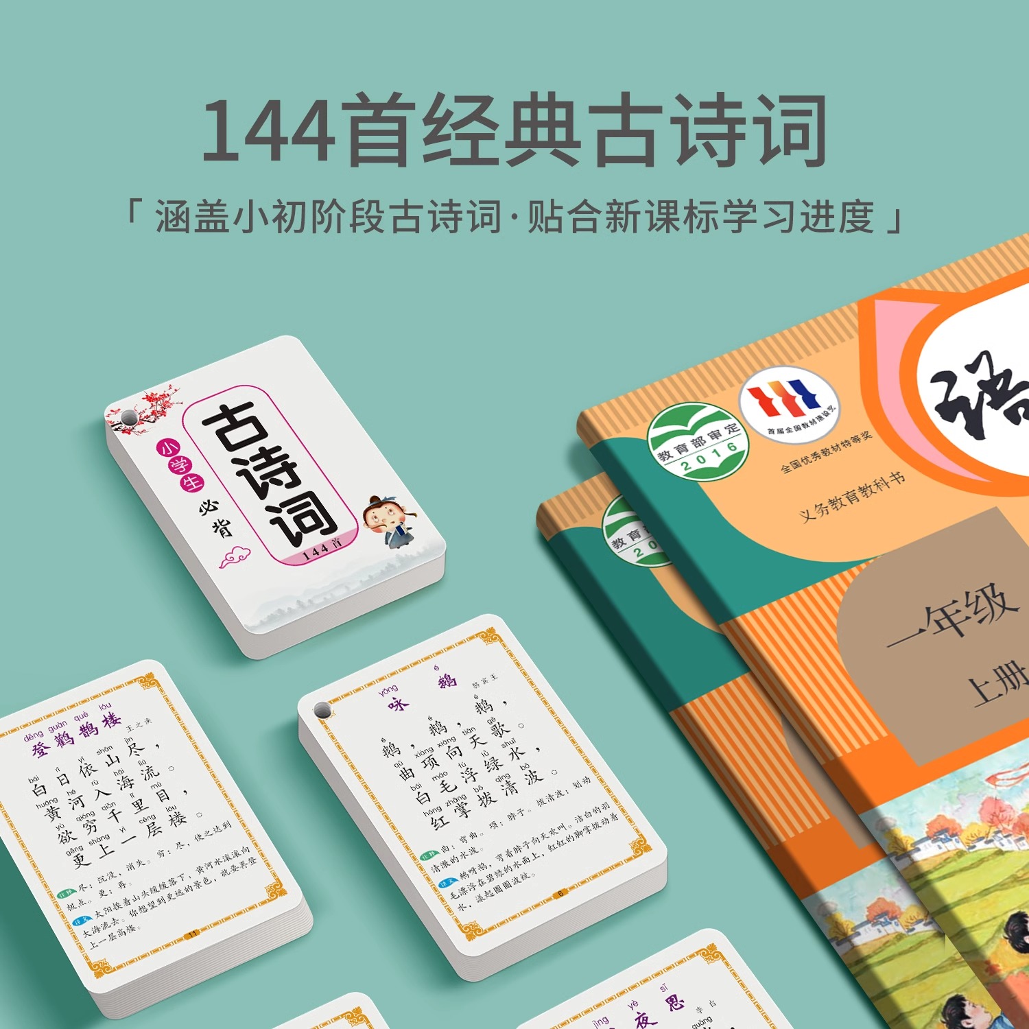 小学生必背古诗词卡片1-6年级人教版唐诗宋词儿童认知背诵古诗词早教识字启蒙幼小衔接速记记忆手卡宝宝玩具神器古诗文常识文学