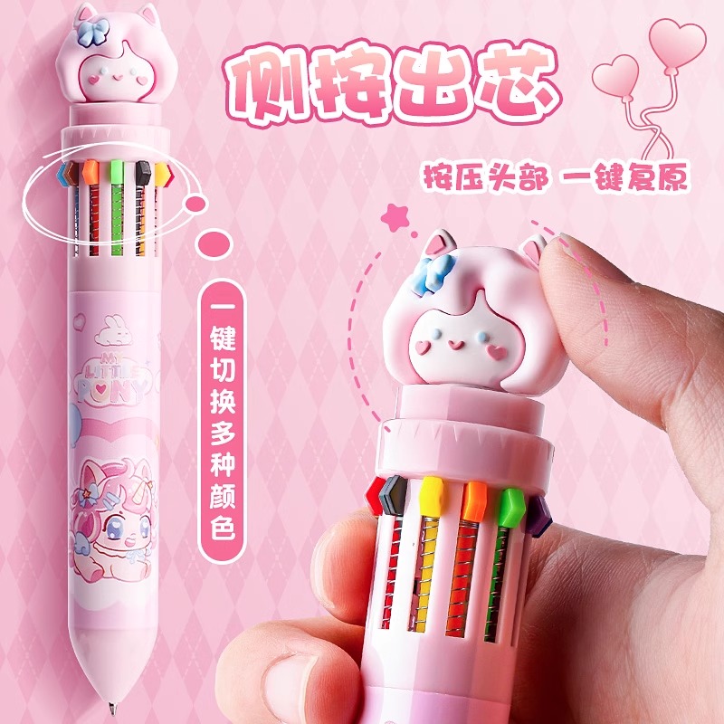 12色圆珠笔多色按动卡通可爱创意颜色笔按压多头式彩色多功能笔一支多合一蓝色黑红小学生用标记号做笔记专用