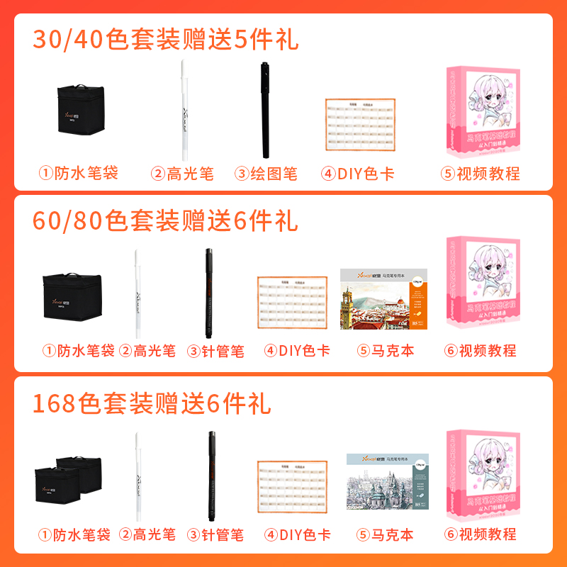 xiaoyi晓意双头马克笔套装油性手绘笔动漫学生专用30/40/168全套