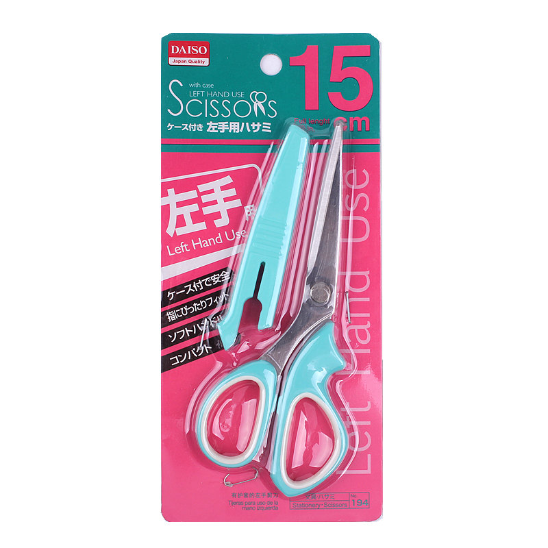 包邮DAISO日本大创 左手剪刀 左撇子 用文具用手工不锈钢13cm带套