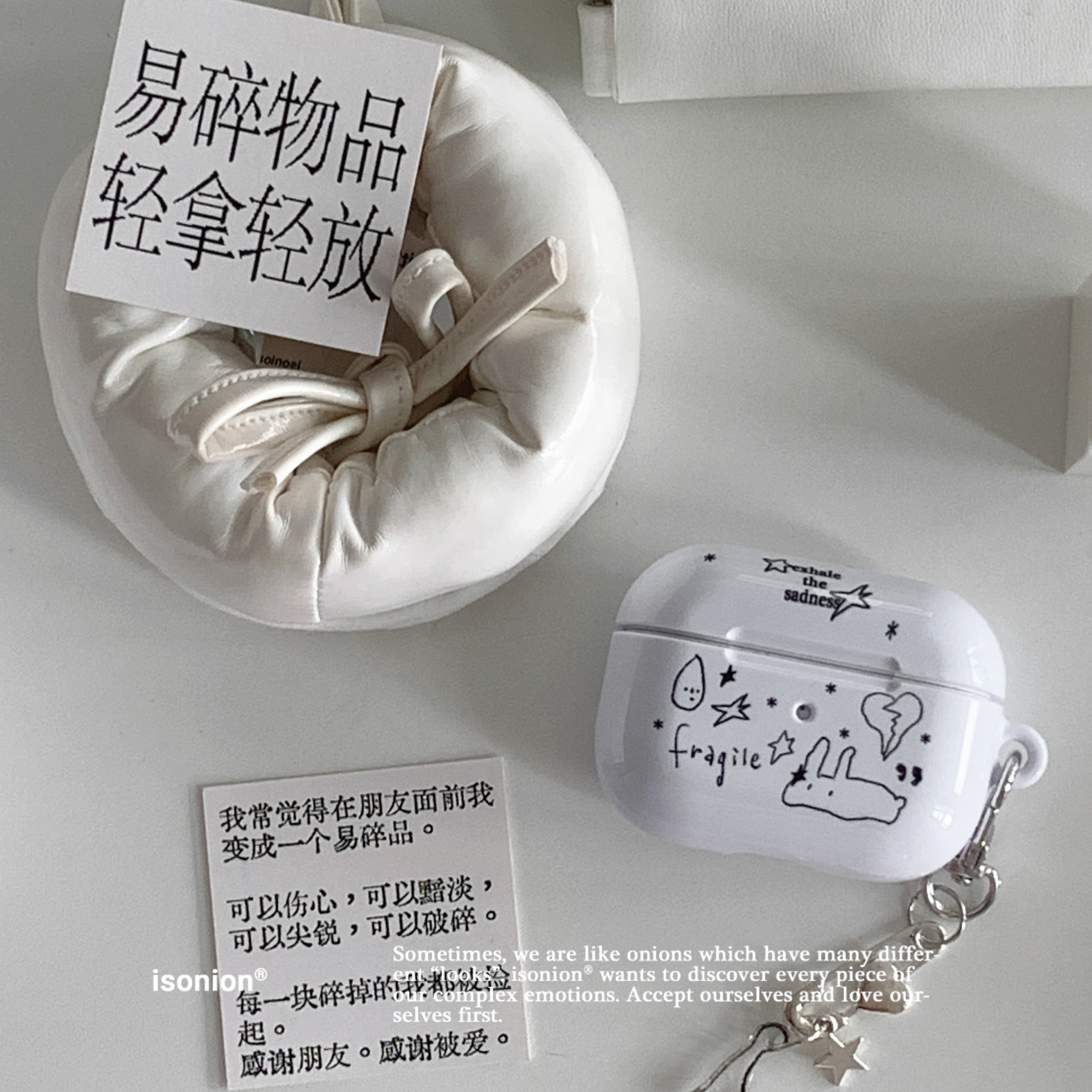 整日不营业原创「呼出伤心」进口韩产ins风可爱苹果AirPods1/2代耳机壳pro保护套4代光面菲林耳机保护壳硬壳