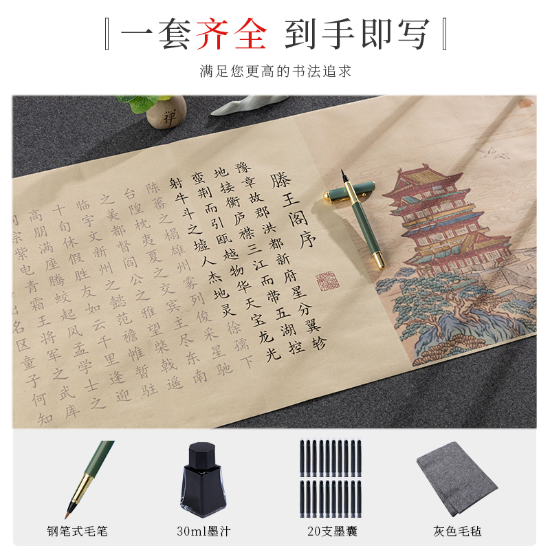 王勃滕王阁序全篇小楷毛笔字帖临摹描红毛笔字初学者入门套装练字专用毛笔书法作品纸钢笔式毛笔专用字帖长卷