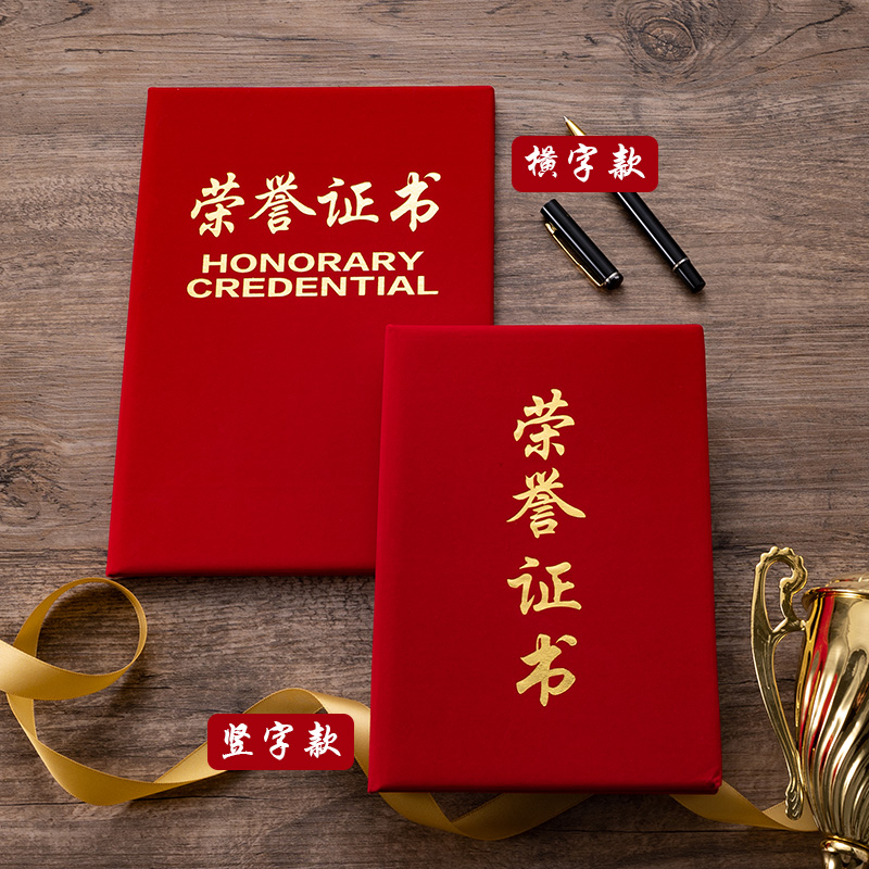 绒面荣誉证书外壳定做奖励证书可打印奖状封皮订制作封面内页批发