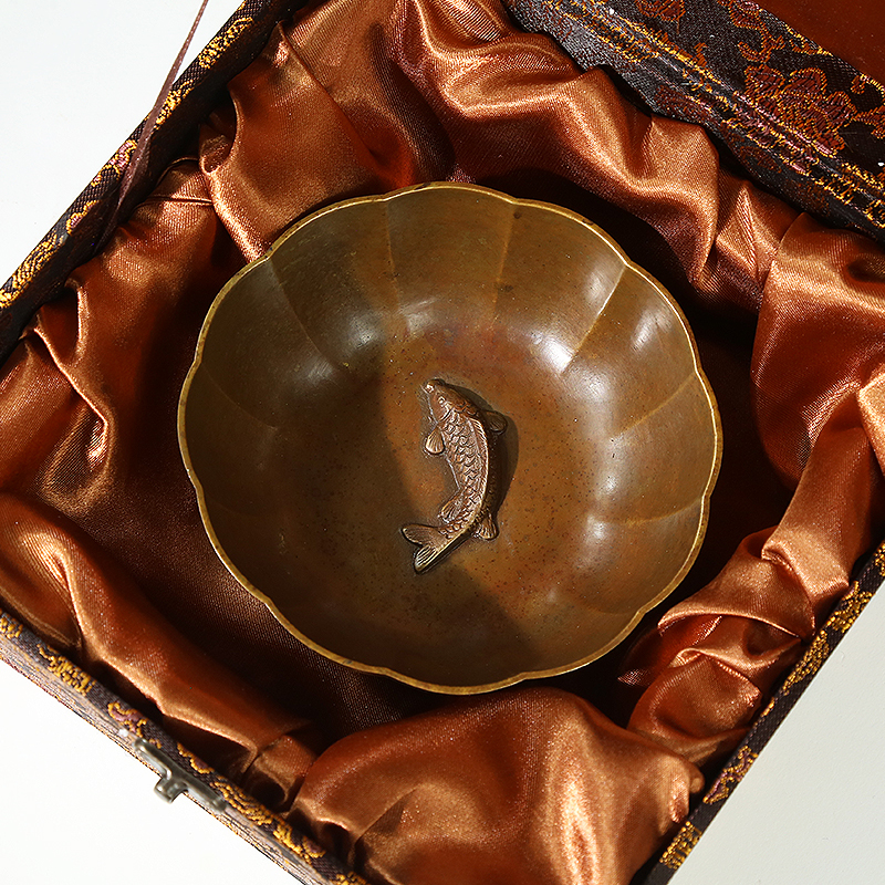 赋比兴 国家非遗 青铜花口鱼纹笔洗 传统失蜡法仿古铜器 高端青铜毛笔洗缸 书法创意小摆件实心铜 文房四宝