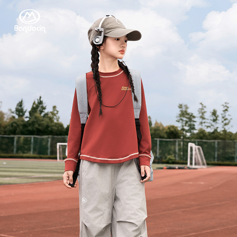 半度闲女童秋装长袖打底衫t恤洋气中大童新款儿童春秋运动上衣潮T