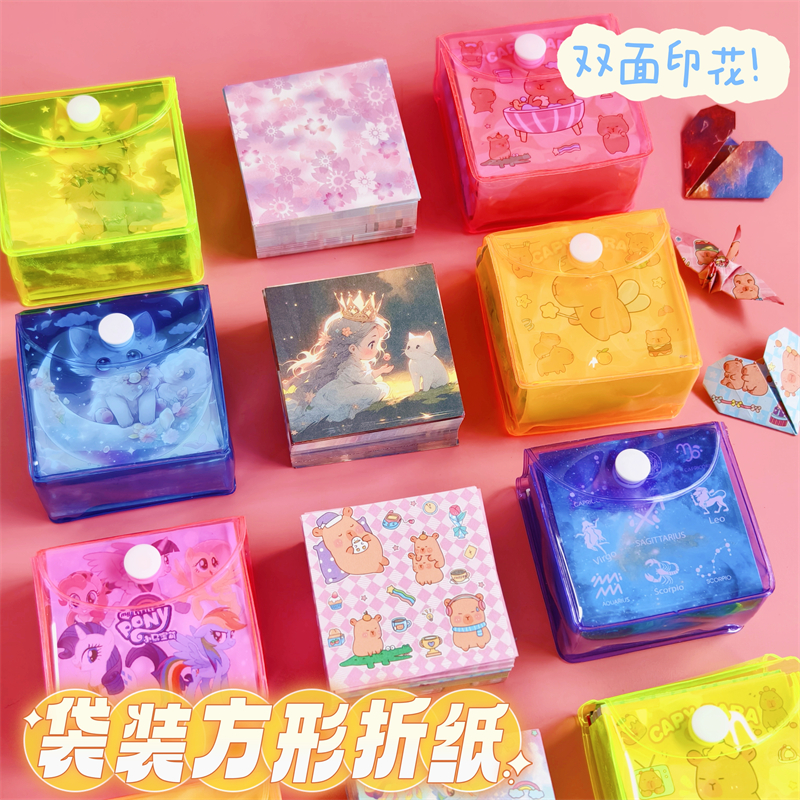小正方形卡皮巴拉双面印花折纸儿童迷你千纸鹤幼儿园做手工纸飞机