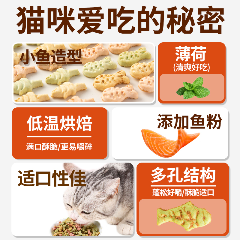 猫饼干猫咪零食猫用薄荷饼干小磨牙鱼洁罐头齿化增毛球肥拌粮干
