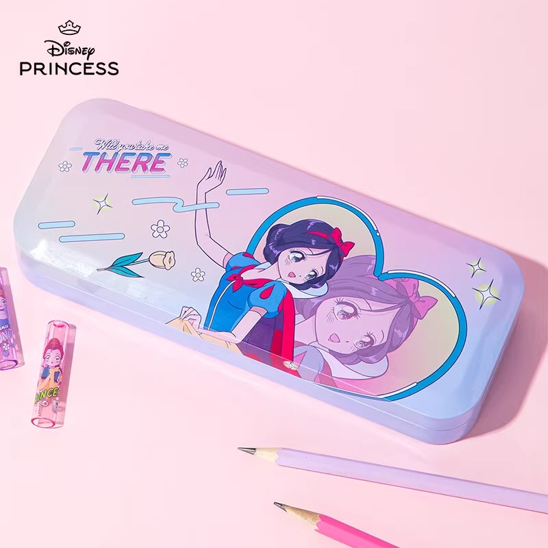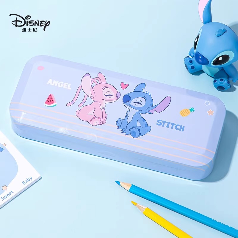 迪士尼史迪仔草莓熊公主铁文具盒儿童多功能铅笔盒幼儿园女孩卡通双层金马口铁笔盒小学生大容量简约收纳盒子