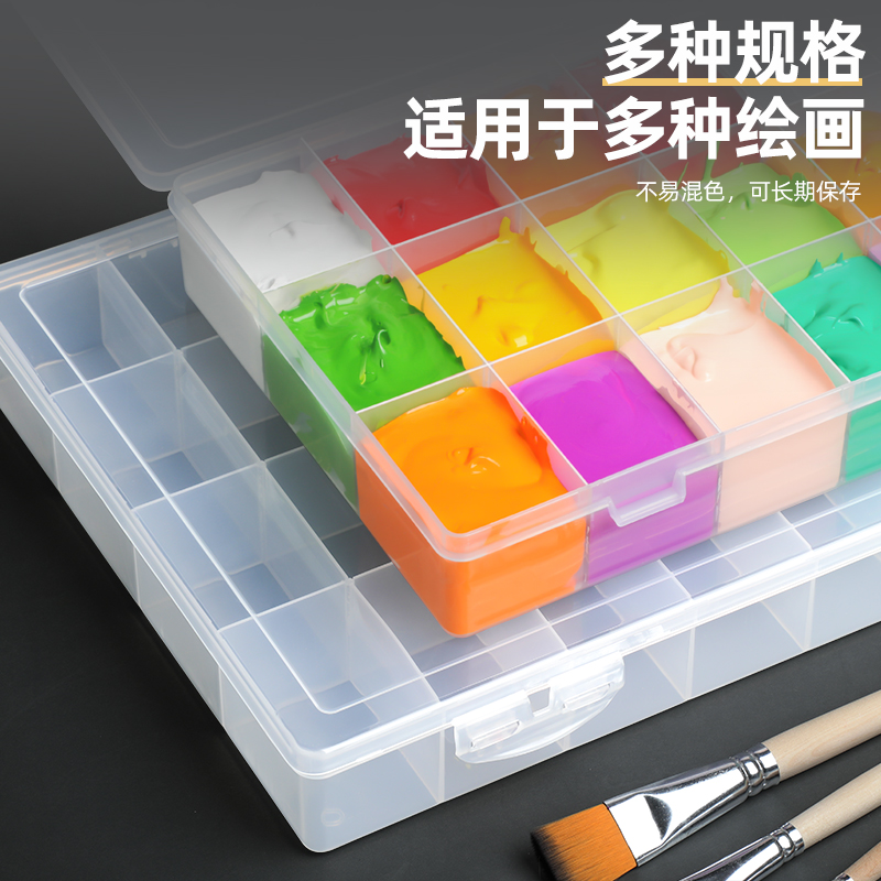 透明颜料盒水粉水彩丙烯油画调色大容量分装盒48色收纳盒美术生专用调色盒空盒24格36色21格保湿密封盒颜料盒