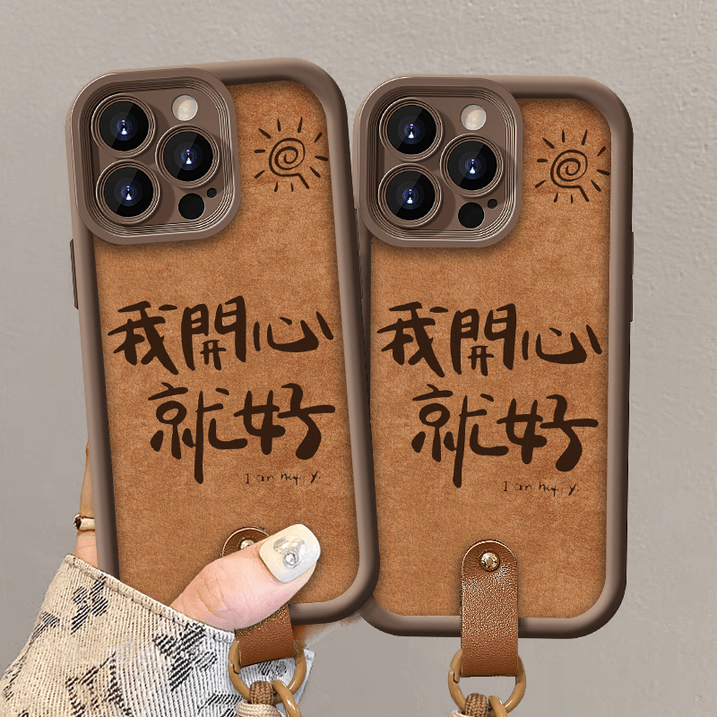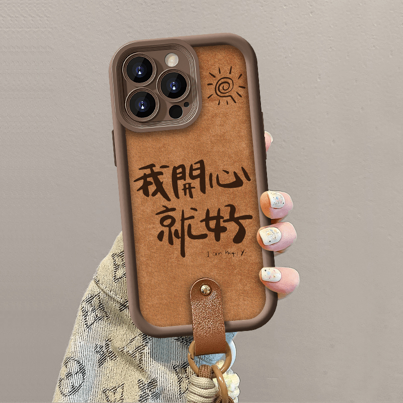 我开心就好适用苹果16promax手机壳iphone15新款13华为mate60荣耀200美拉德Reno12挂绳VIVOS19小米14OPPO个性