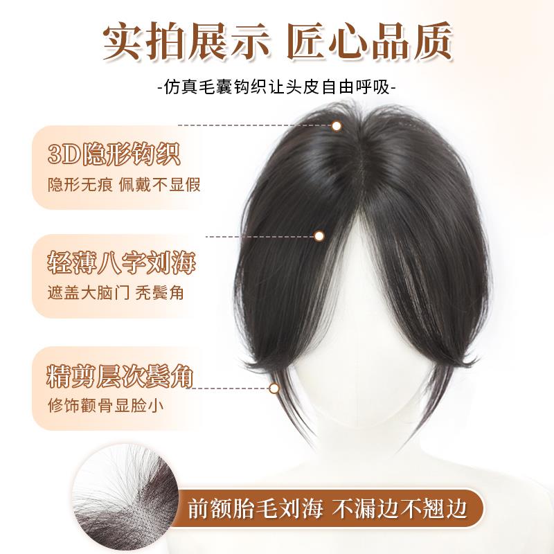 八字刘海假发片女头顶补发全真发高颅顶蓬松增发量轻薄自然假刘海