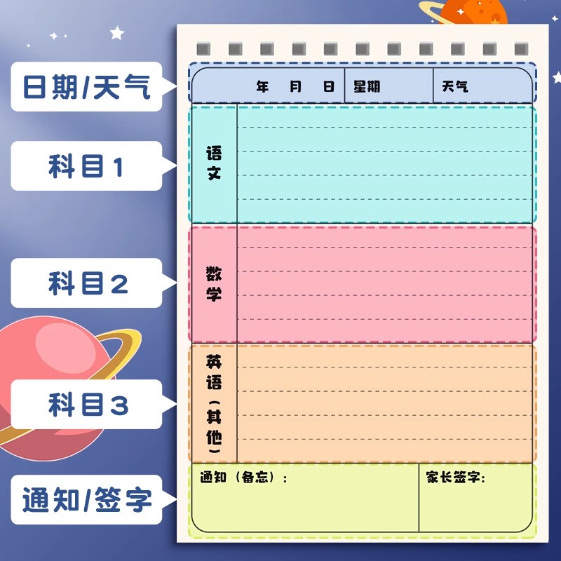 家庭作业登记本记作业本小学生专用小本子a6抄写登记课堂作业记事本小学生记录本笔记本上翻线圈本家校联系本