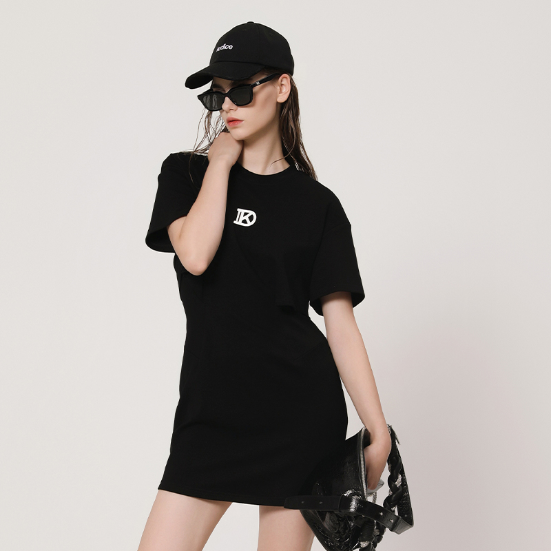 森马连衣裙女收腰T恤裙小心机夏季2025新款绣花圆领短裙简约休闲
